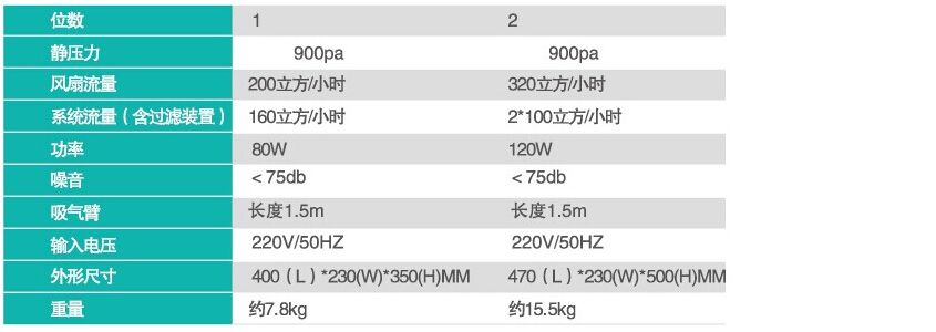 * 內置式煙霧過濾循環空氣過濾方式避免將室內冷氣/暖氣排到室外。 * 多工位設計,風量可調,柔性吸煙臂調節自如。 * 低噪音設計 *單工位或者雙工位設計,風量可調,定向風管調節、定位自如。